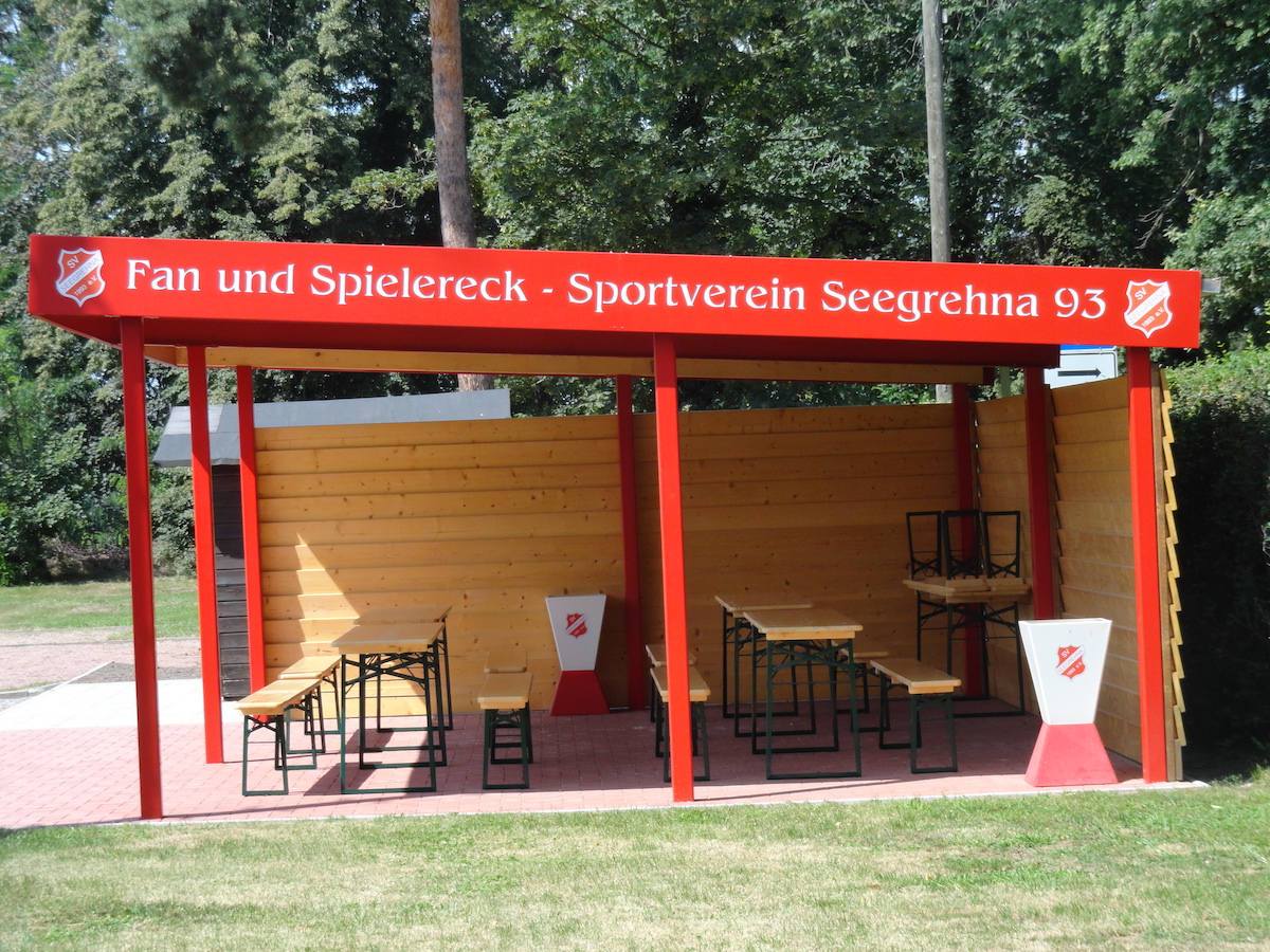 Ende Juni diesen Jahres wurde das „Fan- und Spielereck“ des Sportvereines auf der Sportstätte „Gebrüder Grabsch“ endgültig mit den Malerarbeiten und der Beschriftung fertig gestellt.