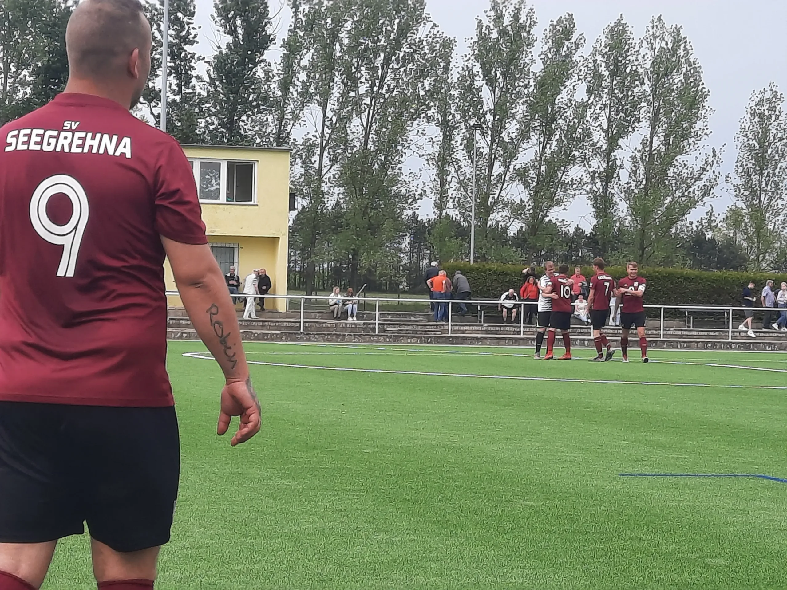 50. Minute z.Bsp. ein schöner Ball von Chrissi von der Grundlinie auf Benni, dessen scharfen Schuss der Torwart grad so noch von der Linie kratzen konnte. Wirklich jeder auf dem Feld war bereit alles für die Spielwende zu tun. Und siehe da in der 73. endlich wurden die Bemühungen belohnt: Flanke von Ben auf Steven welcher nur noch einschieben braucht. Na also geht doch. 76. Minute dann blockt der Torwart einen Schuss von Steven, der Ball kommt zu Chrissi welcher diesen dann im 2. Versuch im Tor unterbringt. Endlich Spiel gedreht, Fans aus dem Häuschen, Gegner am Boden. Seegrehna brachte das Spiel (sicher auch dank der späteren Zahnaer Unterzahl) dann souverän zu Ende. Ein großer Dank an die mitgereisten Fans und vorallem die lautstarken Kiddies an der Seitenlinie und aber auch an die Gastgeber welche trotz der zwischenzeitlichen „Hitzigkeit“ am Ende fair verhielten.
